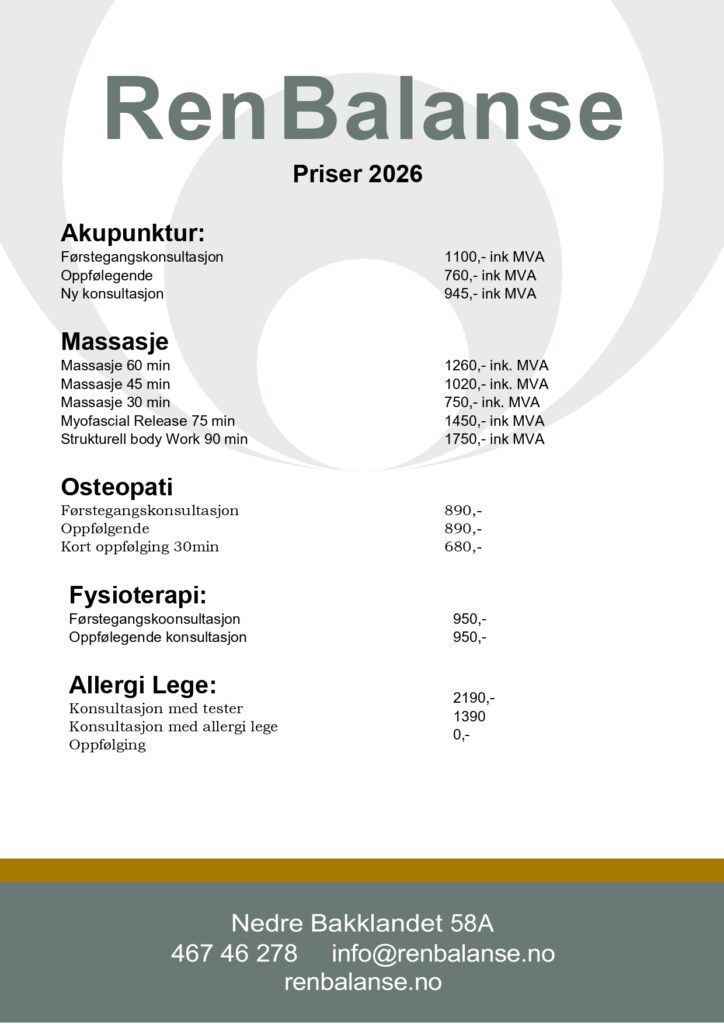 | Muskelterapi 60 min | 1260,- ink. MVA |